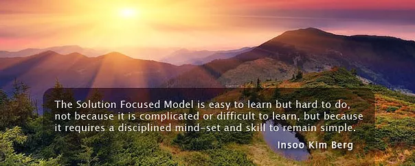 Solution Focused Practice is a future-oriented, competency-based approach, with a solid evidence-based practice, with a robust body of research. It has roots at the Mental Research Institute in Palo Alto, California and in social constructivism, with strong links to neuroscience.